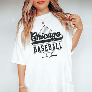 Chicago Baseball Vintage Stripes Black & Silver Comfort Color Graphic Tee