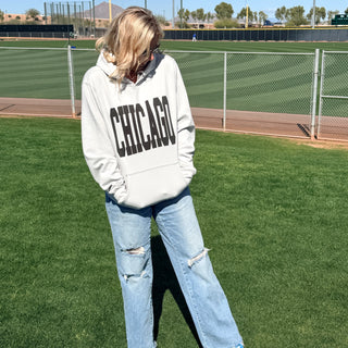 Chicago Script With Ball Black & Silver Graphic Hoodie