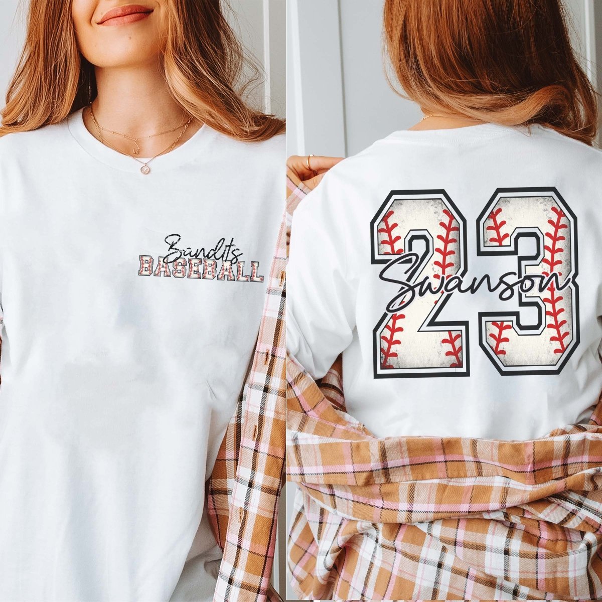 Discover the ultimate way to express your passion for baseball with our Custom Baseball Name Number Team Tee! This unique personalized baseball shirt is the perfect way to flaunt your favorite player's name, number, and team. With custom designs on both the front and back, you'll be stepping onto the field in style and confidence!
