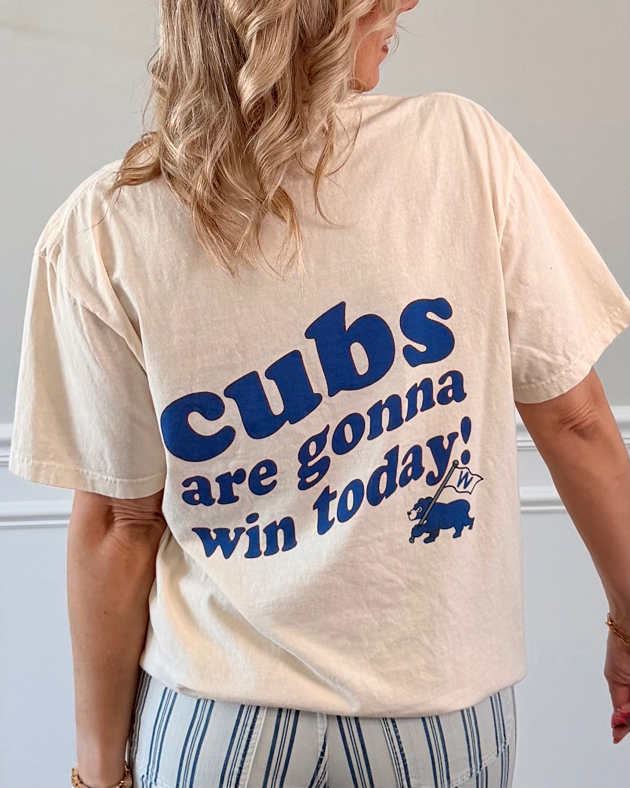 You already know the vibes—sun’s out, the “W” flag is waving, and the Cubs are gonna win today! This bold, front-and-back baseball tee is your game day ticket to ultimate fan status, whether you're repping in the bleachers or from your couch.