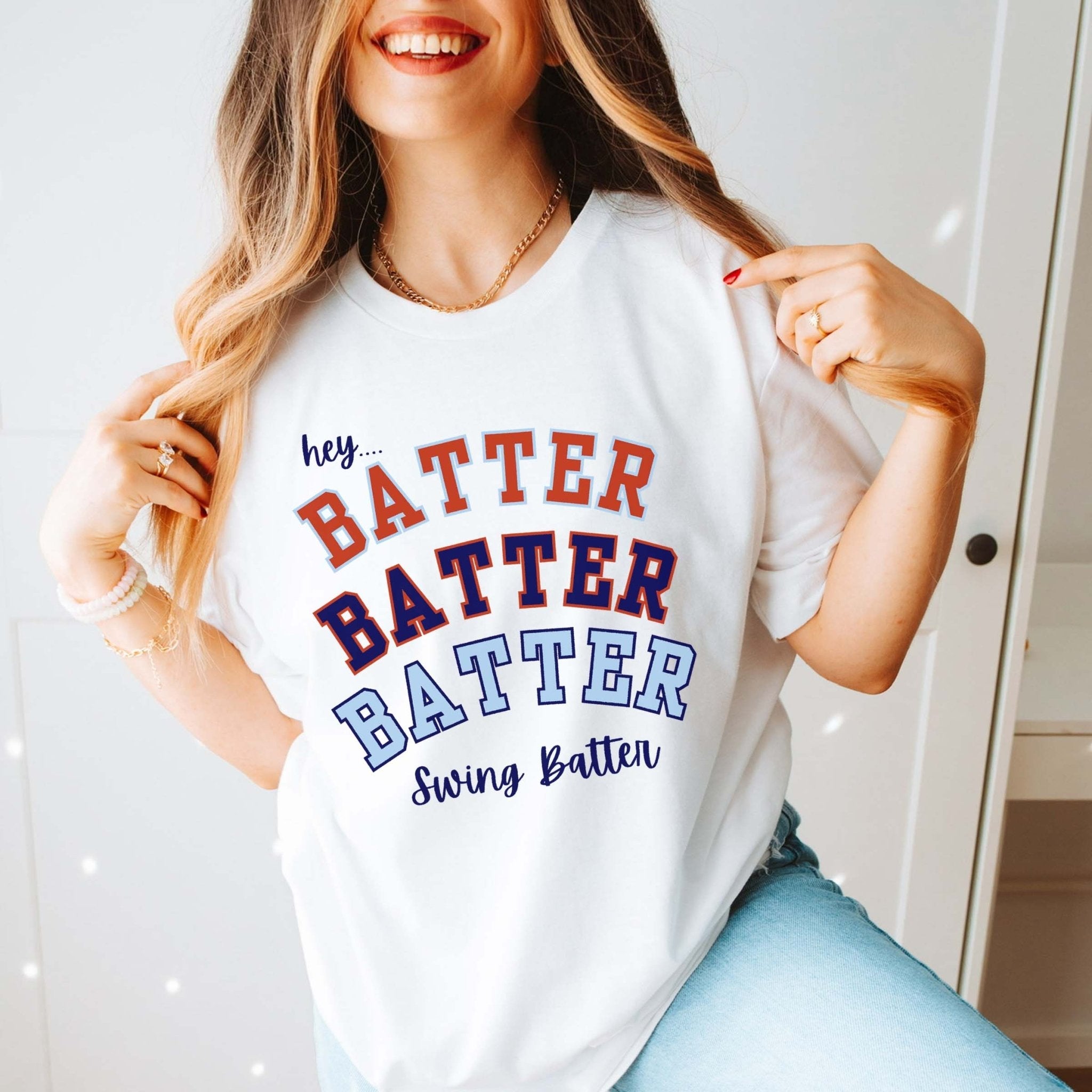 If baseball season had a theme song, this tee would be it. Fun, playful, and full of team-spirit energy, the Hey Batter Batter Batter tee is made for bleachers, ballparks, and cheering just a little louder than everyone else.