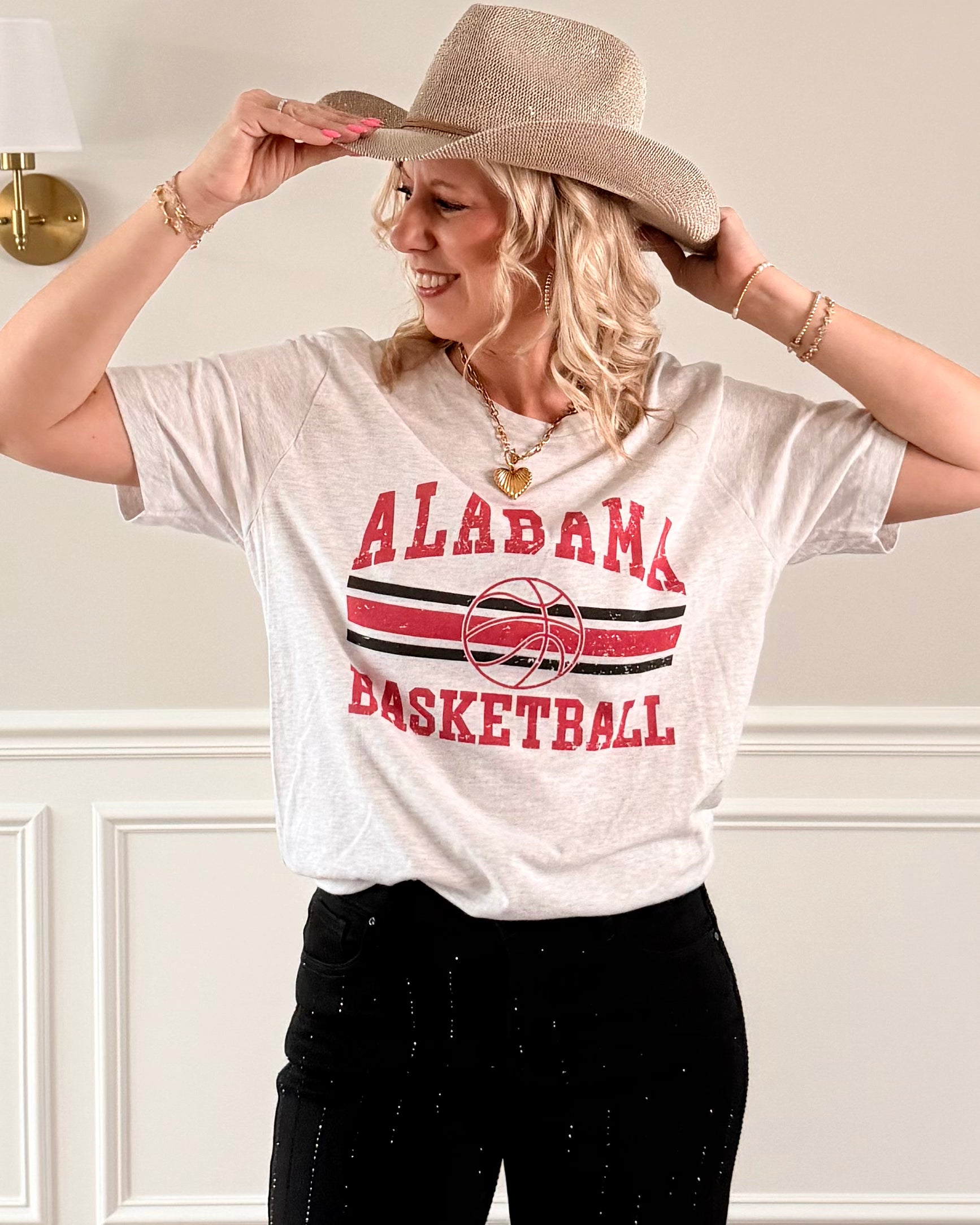 This tee is all about repping your team without sacrificing style. The vintage-inspired stripe design paired with a bold basketball graphic gives it that worn-in, sporty look we all love—without feeling stiff or boxy. It’s soft, breathable, and easy to style whether you’re in the stands or running errands between games.