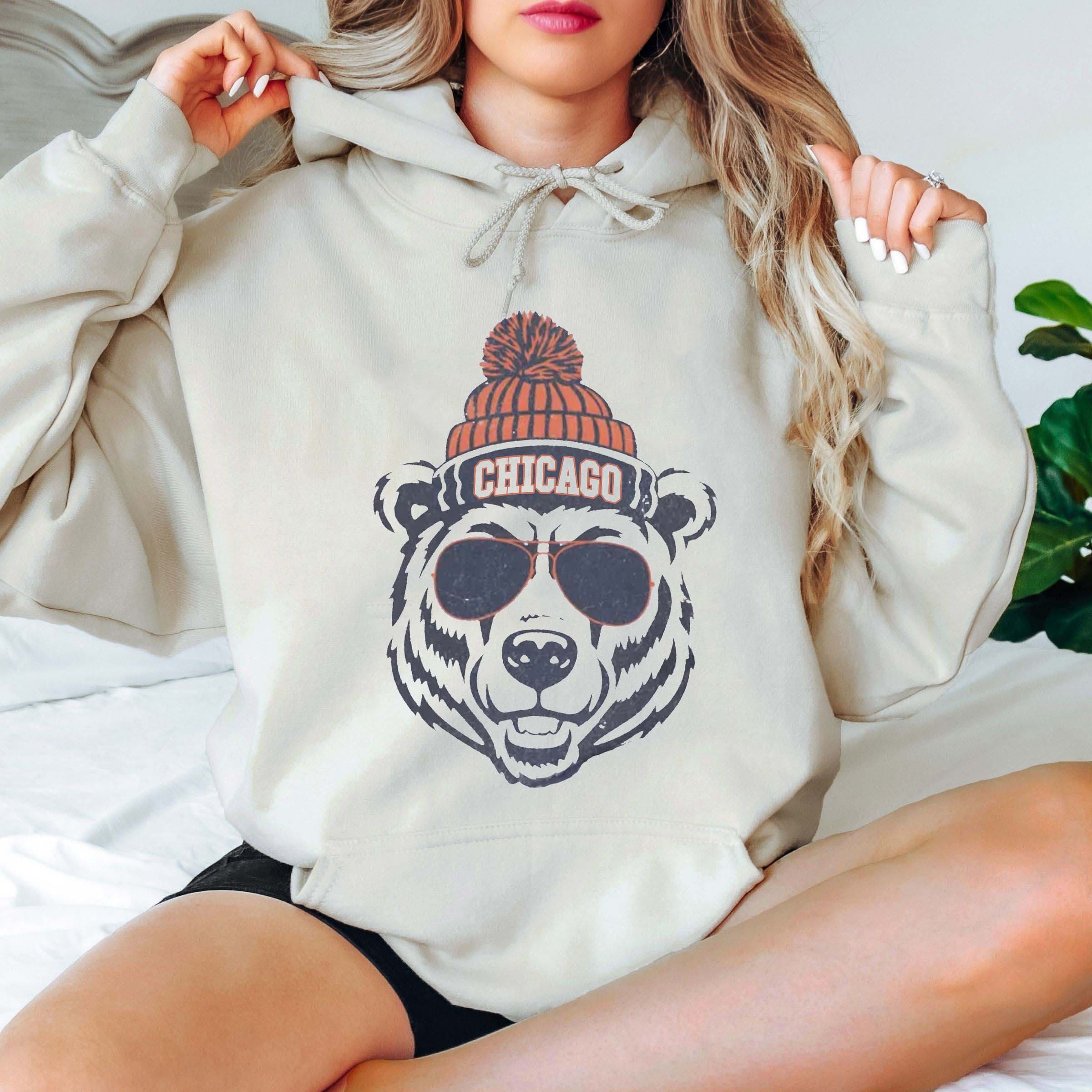 City pride meets game day comfort. Our Bear with Chicago Beanie Hoodie is a laid-back classic with bold team spirit — perfect for cheering from the couch, the tailgate, or the stands.