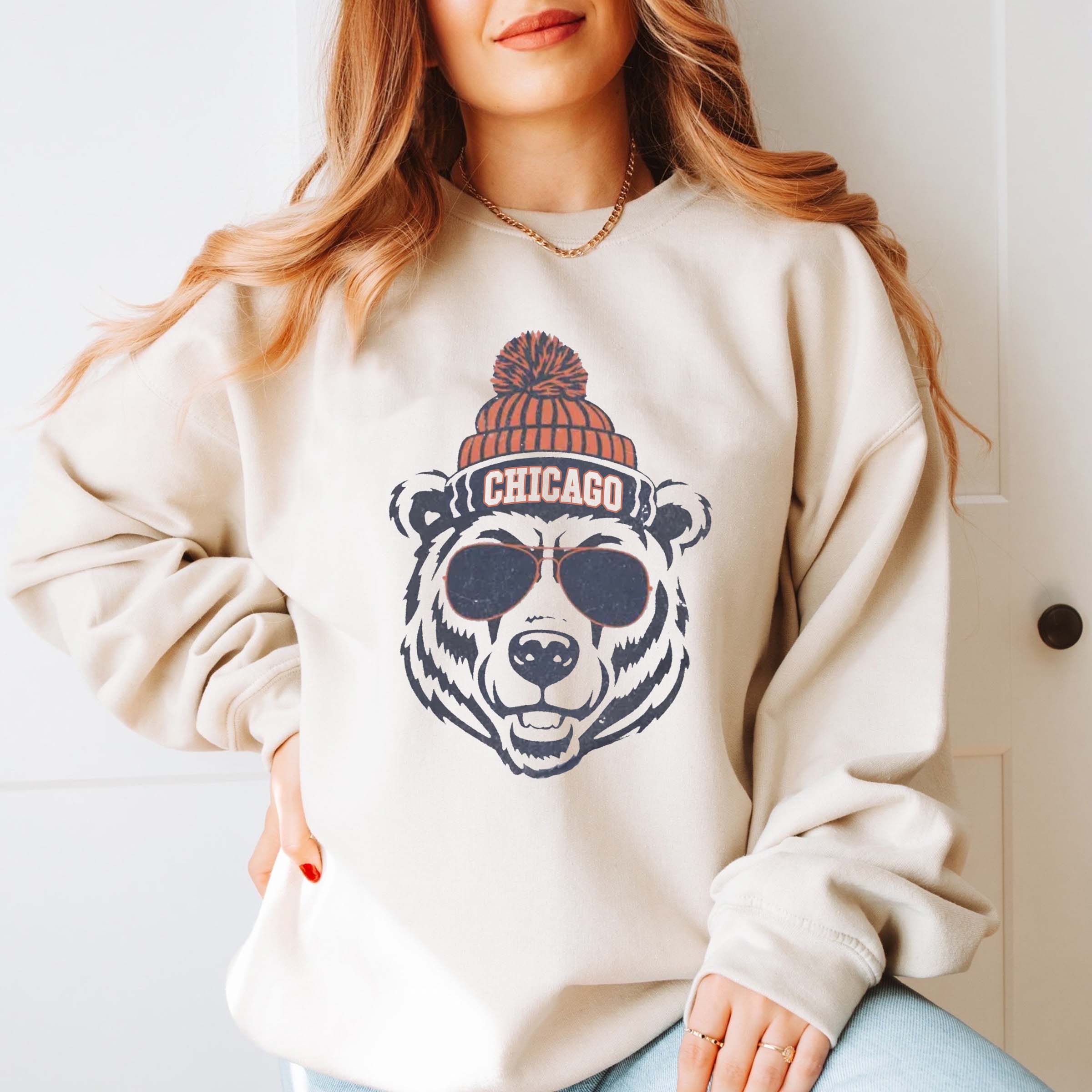 Bear With Chicago Beanie Graphic Sweatshirt - Limeberry Designs