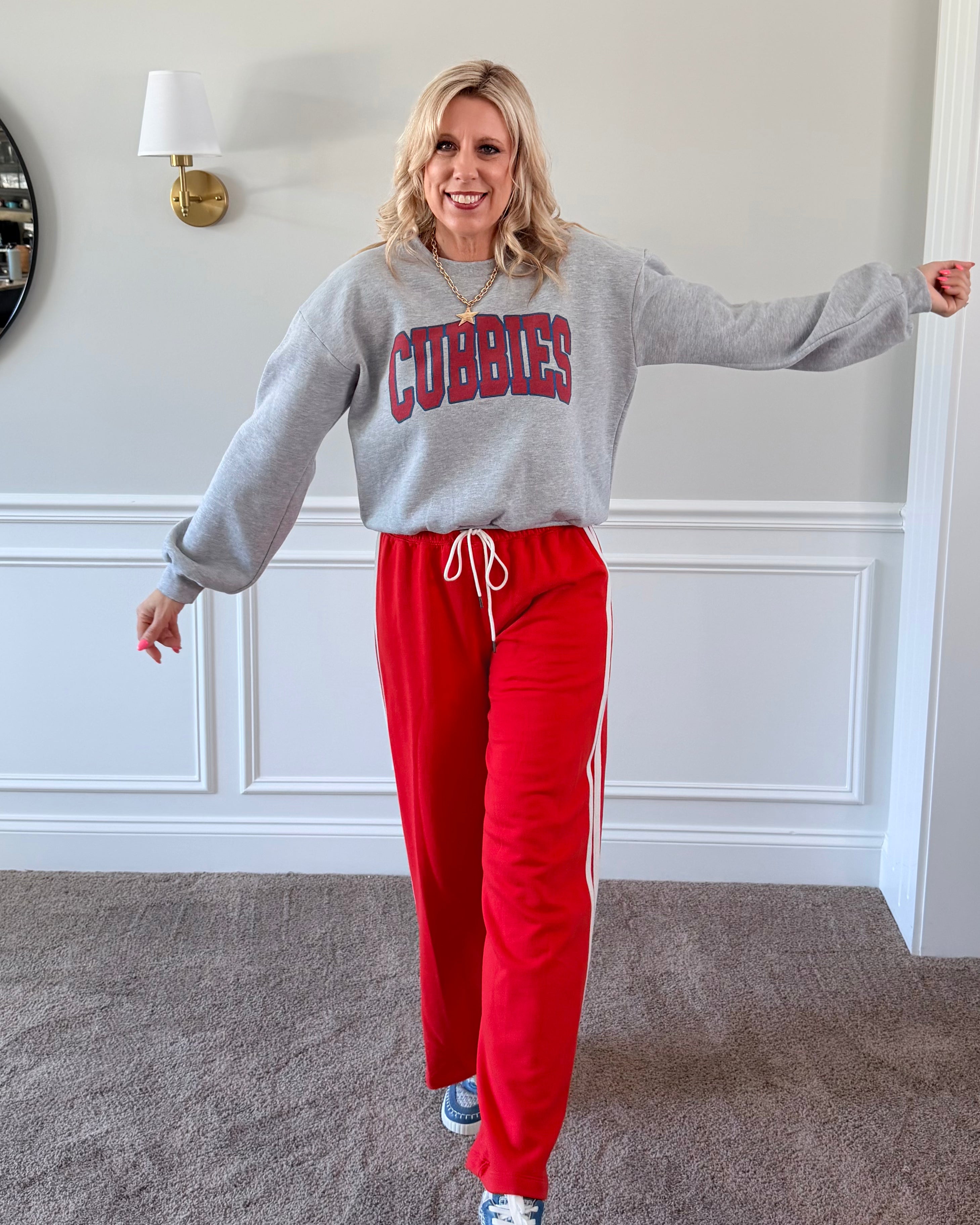 The slightly shorter length gives it a modern feel while still offering full coverage, making it super easy to wear with high-rise jeans, joggers, or leggings. Cozy, flattering, and game-day ready without feeling bulky.