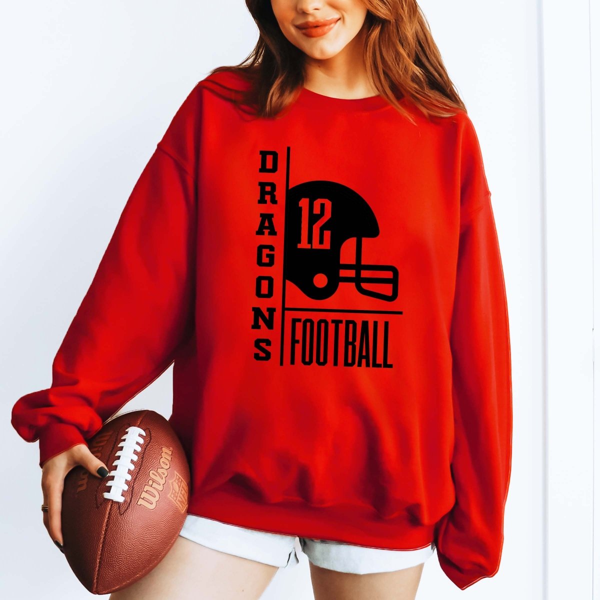 What sets this sweatshirt apart is its customizable design. You can tailor it with your team's name or mascot and your favorite player's number, making it a unique addition to your wardrobe. This bold design effortlessly pairs with jeans, leggings, or joggers, ensuring you're ready for any game day occasion.