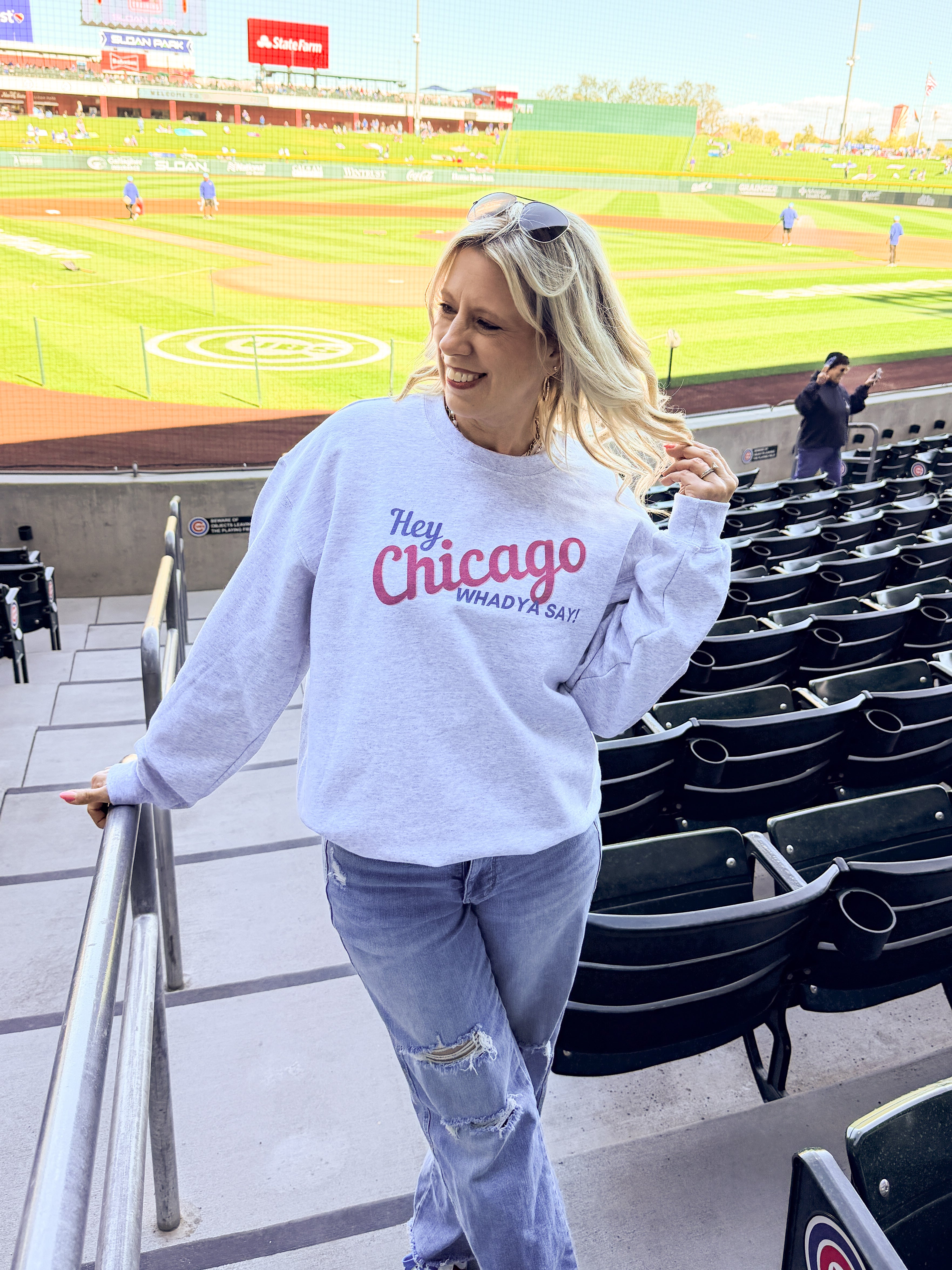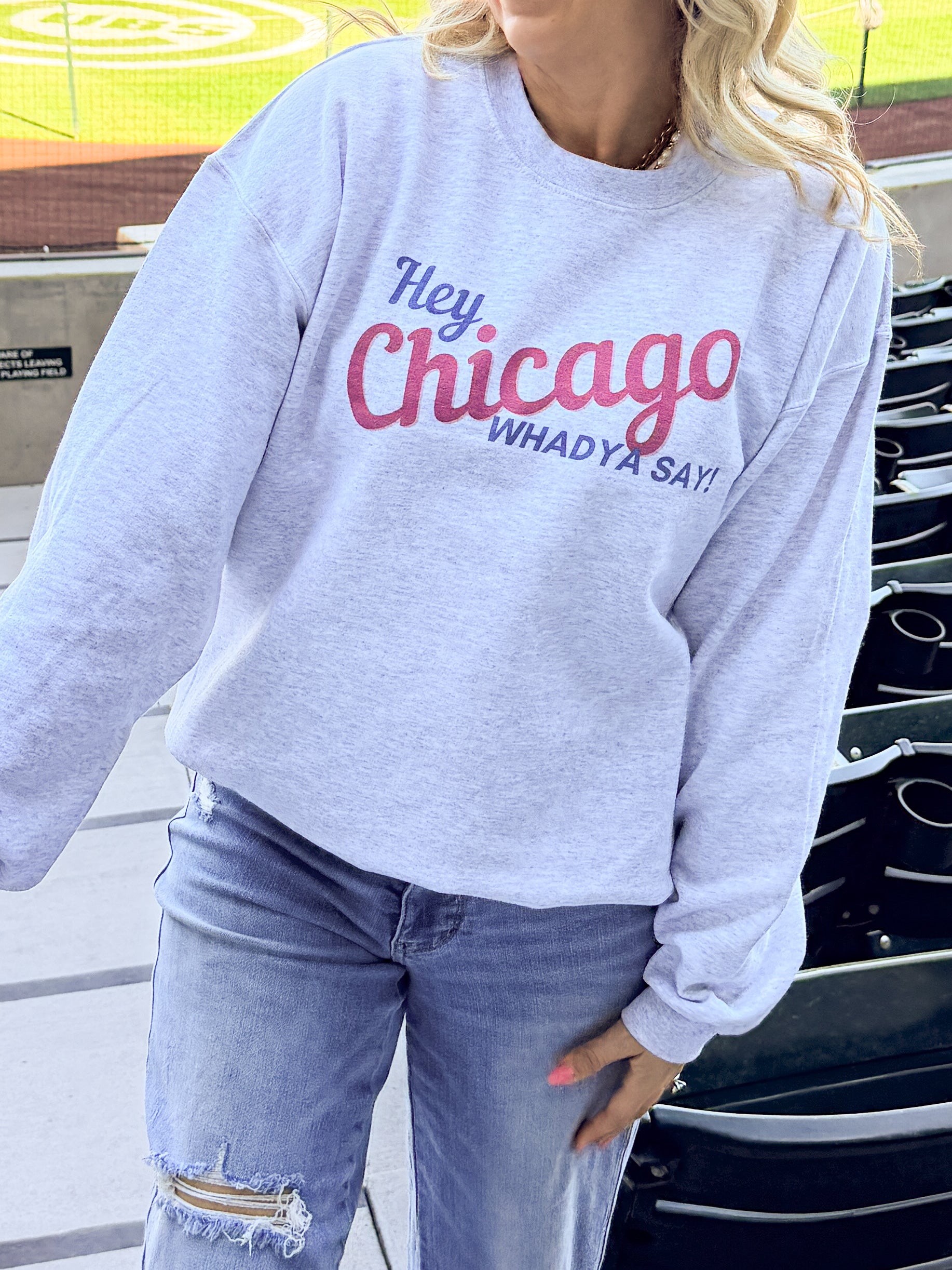 Chicago Baseball Sweatshirt Women | Hey Chicago Whadya Say Graphic Crewneck | Northside Baseball Fan Apparel