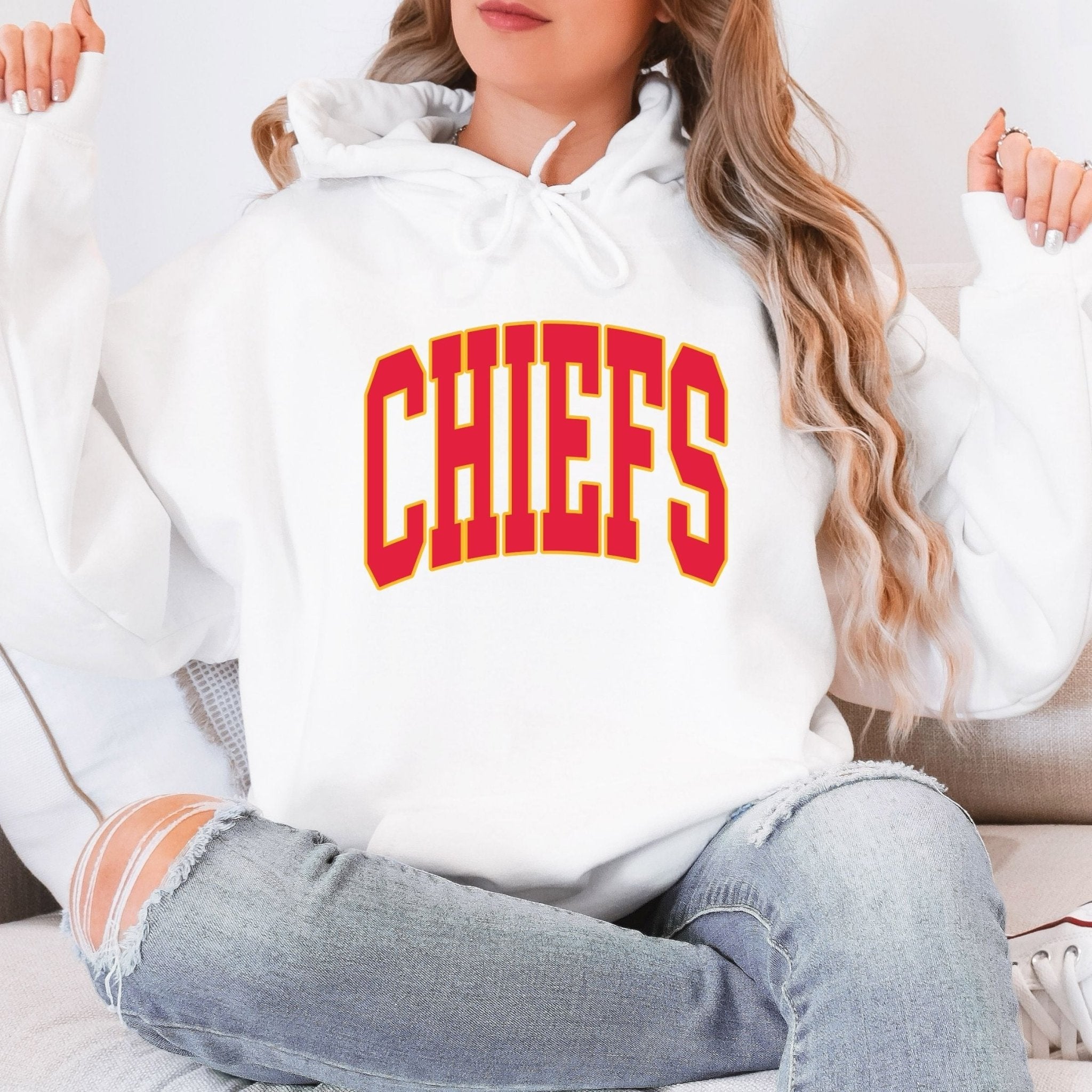 Rep your Chiefs pride in the Collegiate Letter Sweatshirt + Hoodie — cozy, sporty, and made for every season.