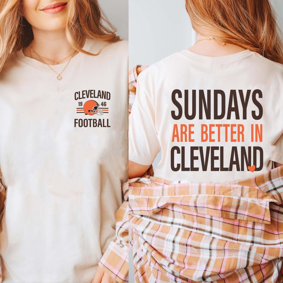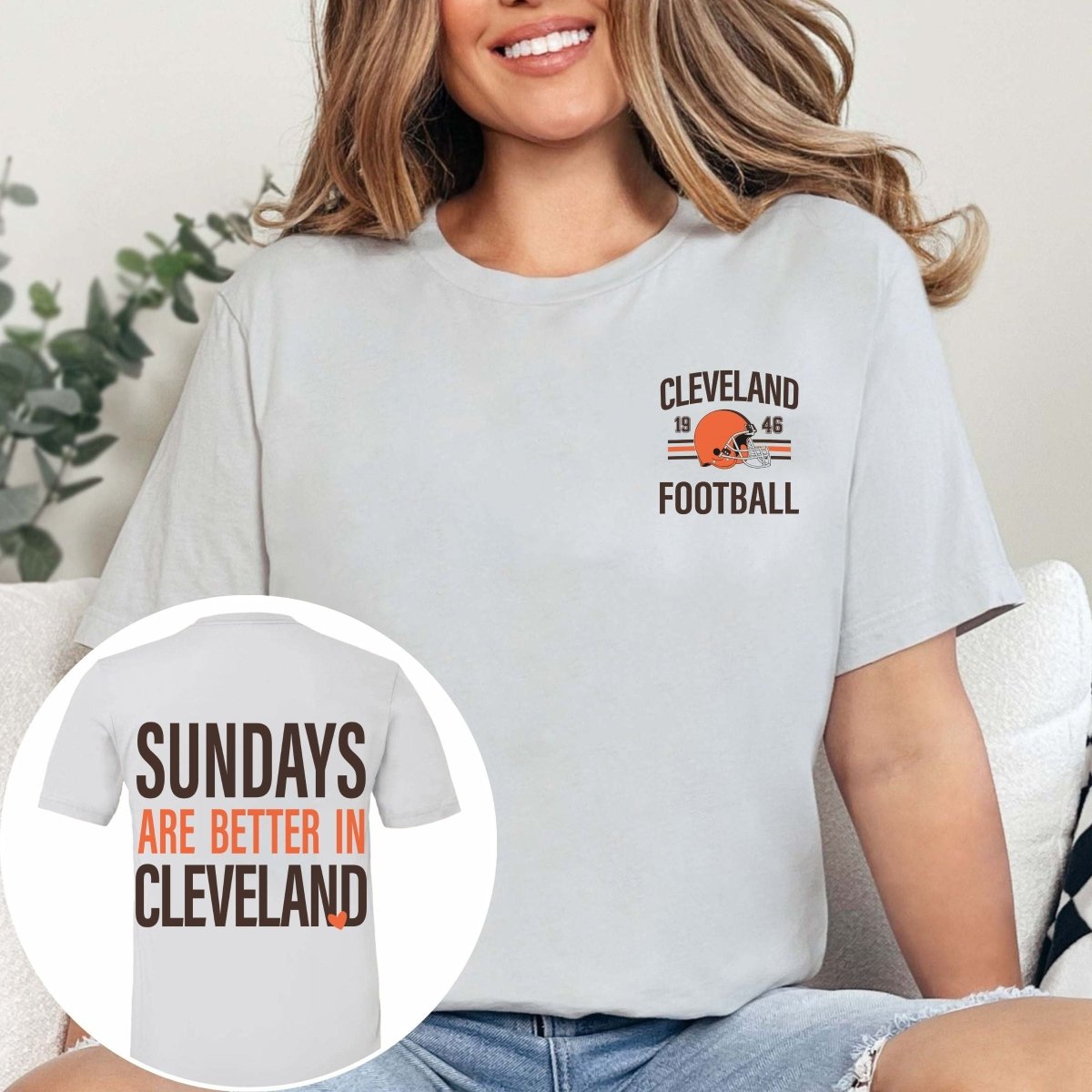 Sundays, but make them game day. The “Sundays Are Better In Cleveland Bella Graphic Tee With Front And Back Design” graphic tee brings bold Cleveland pride in a soft, lived‑in feel—perfect for tailgates, errands, and everything in between.