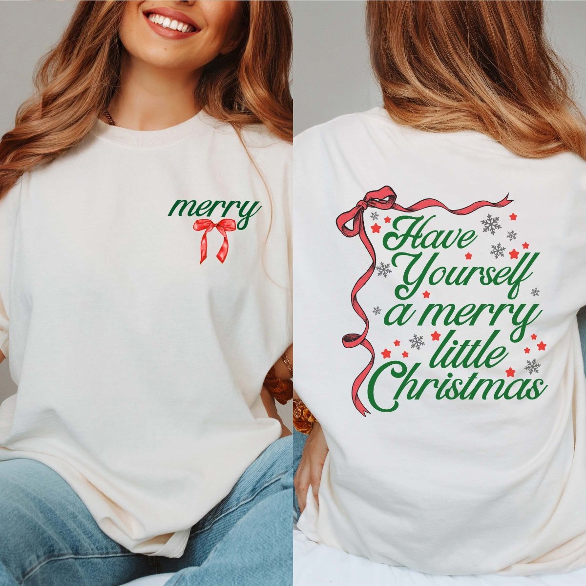 Spread the cheer in this festive front and back design that captures the heart of the holidays. With a sweet “merry” bow on the front and a classic Christmas lyric on the back, this Comfort Colors tee brings cozy, nostalgic charm to every celebration. Perfect for gifting, lounging, or trimming the tree in comfort and style.