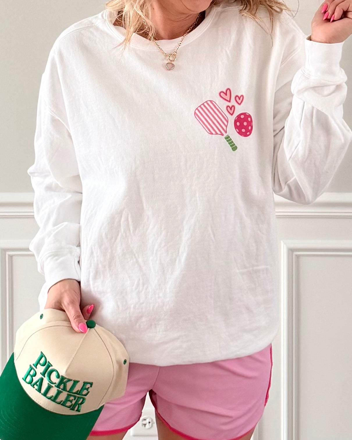 Whether you’re a day dinker, a league regular, or just love a cute sports sweatshirt, this one’s a must for pickleball season (which is basically always).