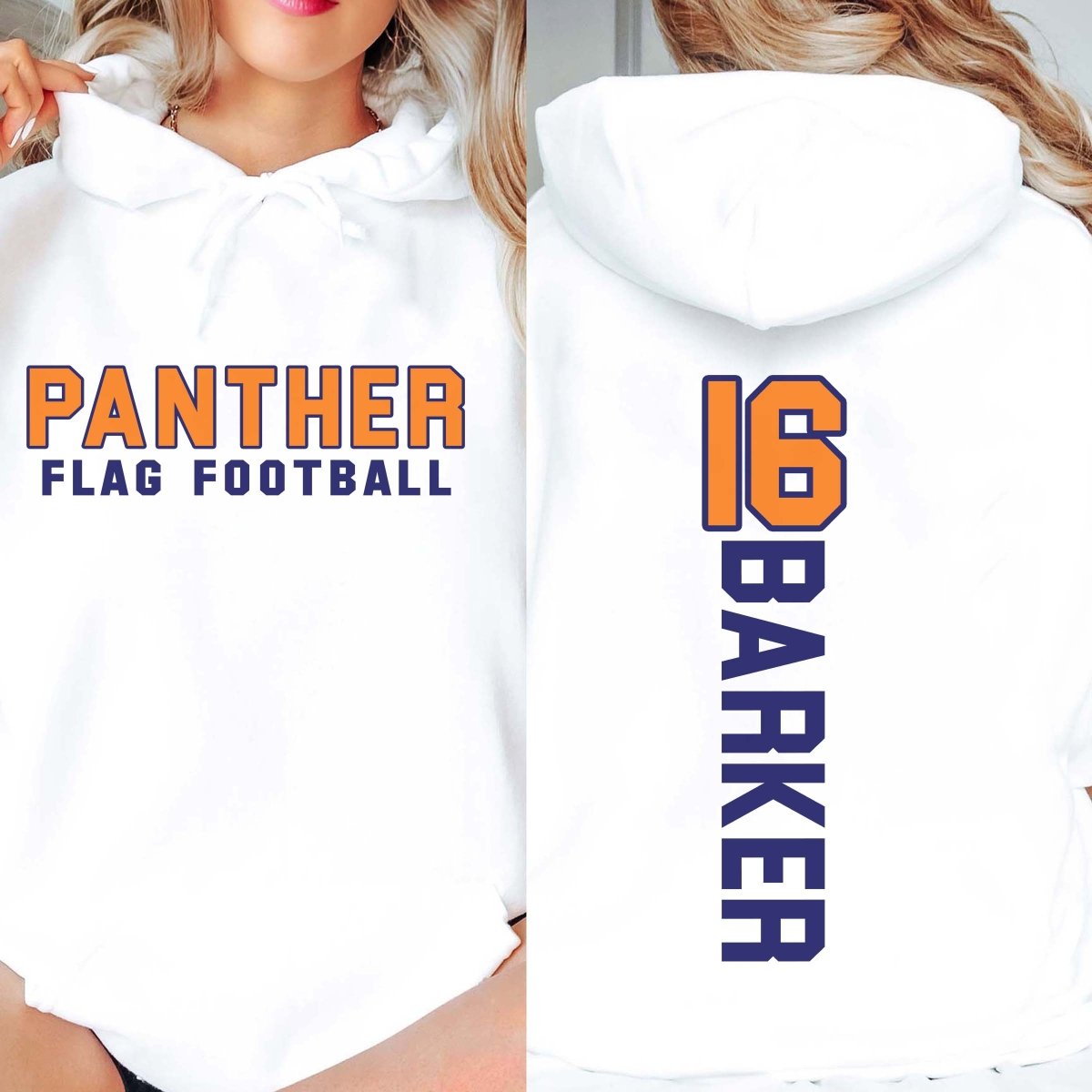 1 - Panther Flag Football Front/Barker 16 Back White Hoodie