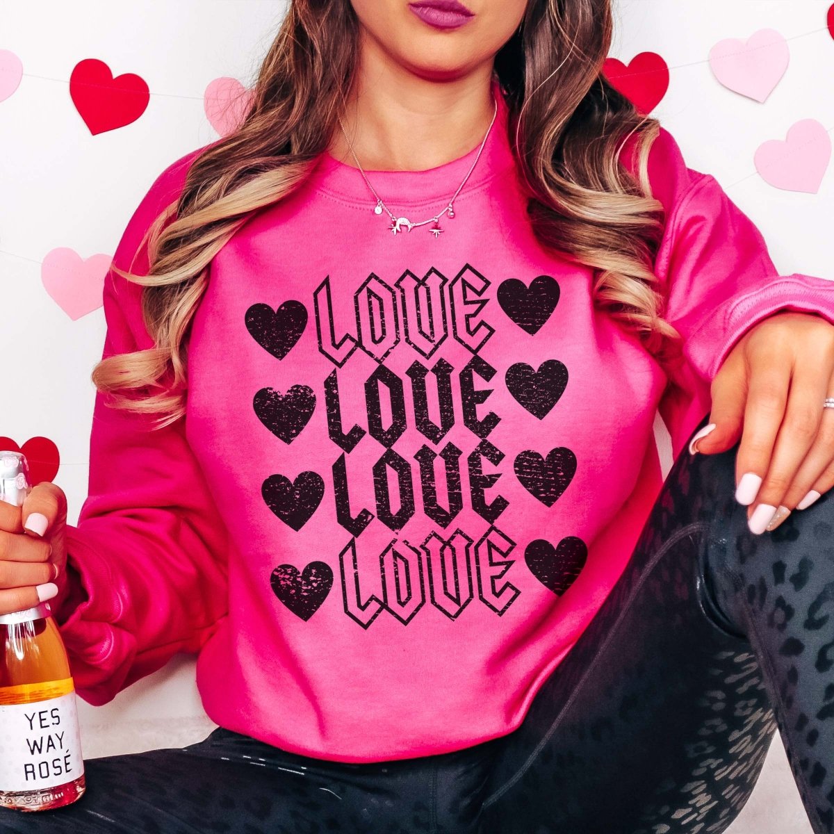 Spread the love with our Love Stacked Hearts Crew Sweatshirt, perfect for Valentine's Day and beyond. Love is in the air!