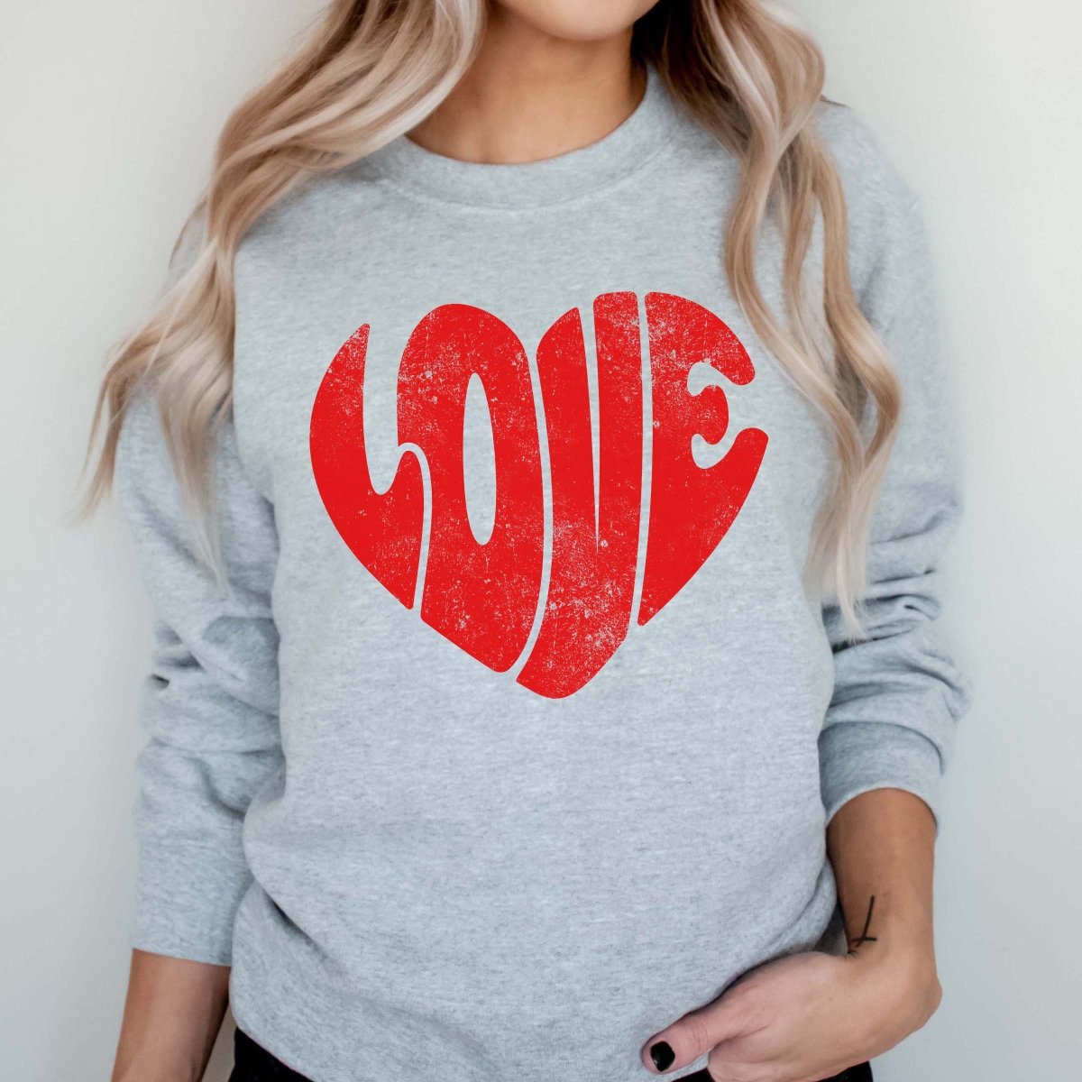 Spread the love with our Red LOVE Distressed Heart Crew Sweatshirt. Perfect for Valentine's Day, this sweatshirt offers both comfort and style. Show your love this season!