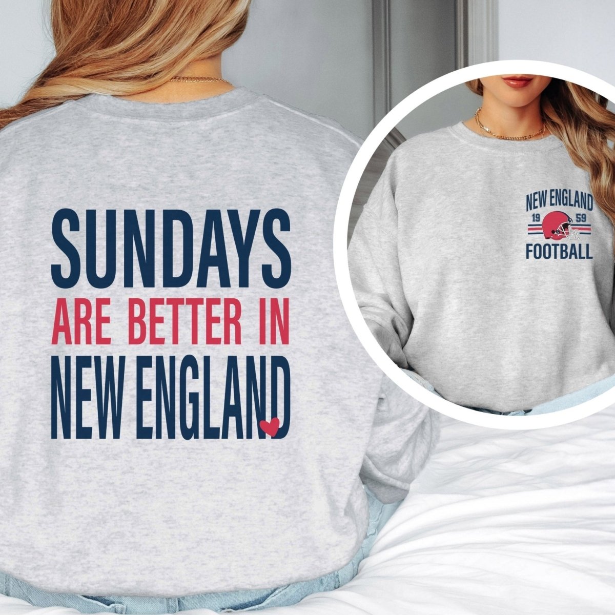 Sundays, but make them cozy. This “Sundays Are Better in New England” sweatshirt keeps your New England pride front and center with a relaxed fit that’s perfect for stadium nights, tailgates, or couch coaching.